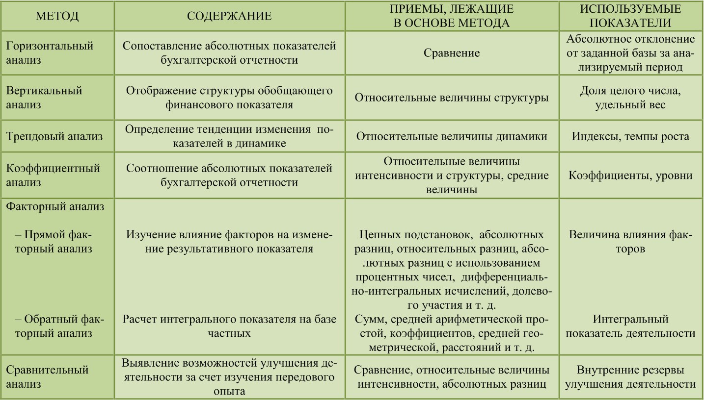 Сущность стандартных методов анализа, используемые приемы и формируемые показатели
