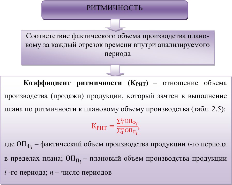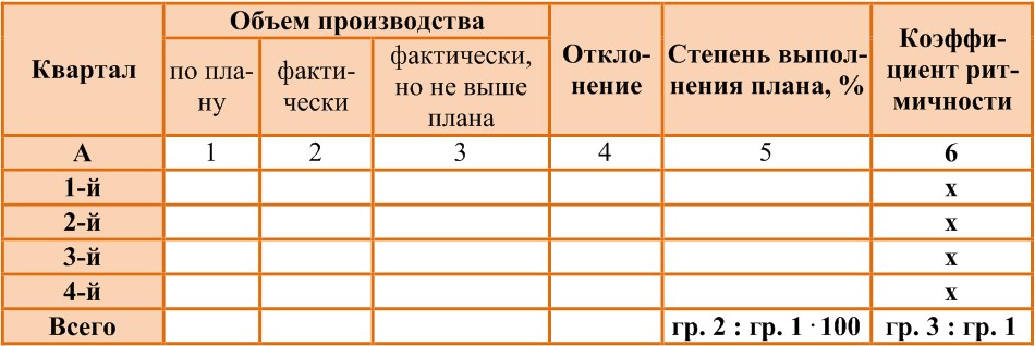 Критерий оценки результата: оценка ритмичности выполнения плана объема производства продукции по кварталам отчетного года на основании значения коэффициента ритмичности, которое должно стремиться к 100 %.