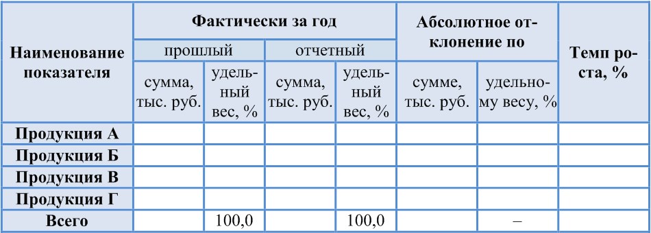 Анализ ассортиментной структуры производства и ее изменения за два года