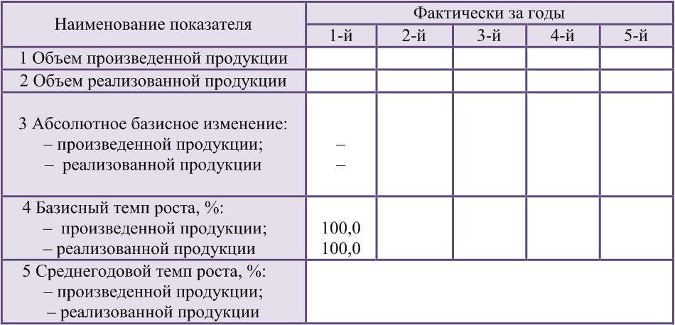1. Оценка динамики объема производства за пять лет на базе базисного темпа роста в пятом году.