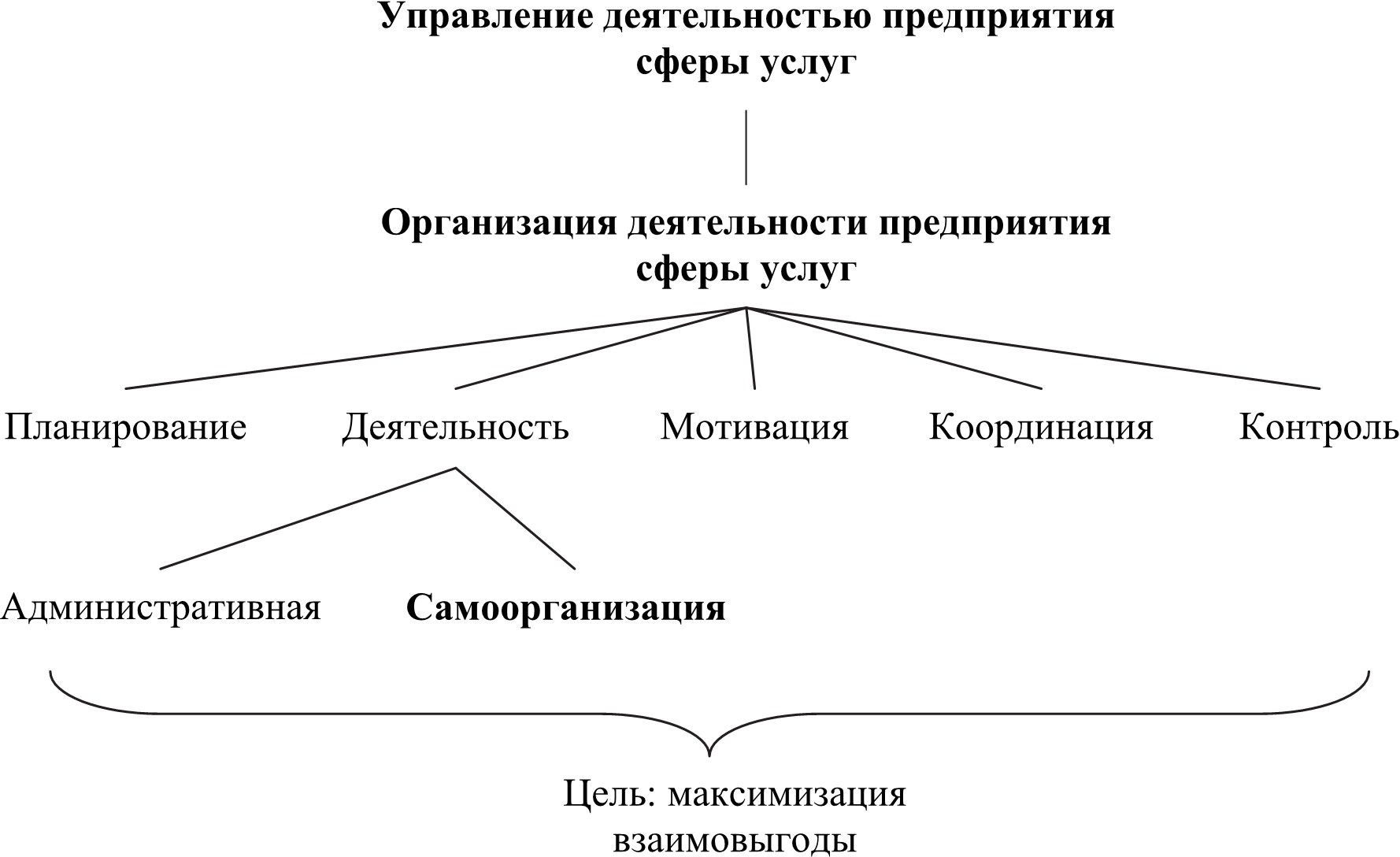 Это приводит к изменению содержания связей в коммерческой деятельности. При существующих различиях в восприятии управления на микроуровне экономики в данном случае оно представляет собой взаимодействие традиционного управления (планирования, организации, мотивации, координации, контроля), направленное на обеспечение устойчивого и конкурентоспособного развития и функциональной самоорганизации деятельности торговли услугами и на соответствующую максимизацию взаимовыгоды её участников. При этом важно, чтобы образование рыночной формы торговли не подстраивалось под привычную существующую систему управления и организации.