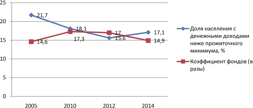 Отраслевая дифференциация заработной платы, диспропорции на рынке труда, относительно высокий уровень безработицы в муниципальных образованиях края приводят к тому, что в последние годы растет доля лиц, имеющих доходы ниже прожиточного минимума и остается достаточно высоким разрыв между бедной и богатой частью населения Красноярского края (рис. 1.4).