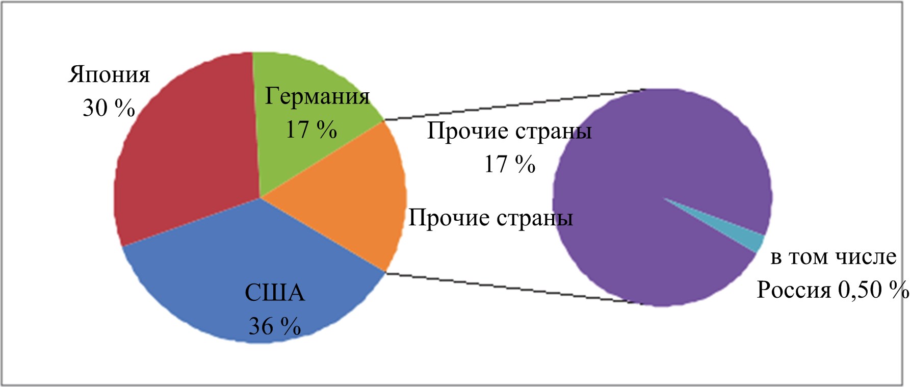 Рис. 1. Доля наукоемкой продукции на мировом рынке