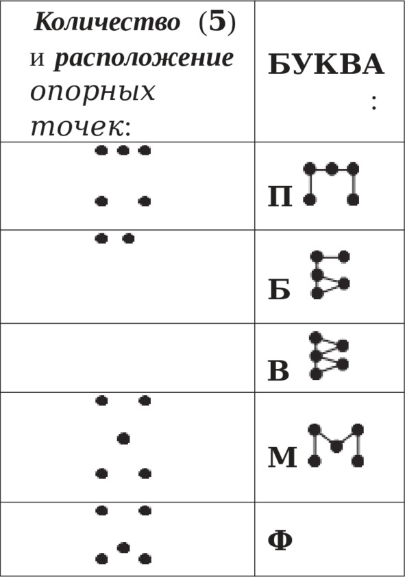 ЛЮБОЕ расположение 5 «опорных точек» даёт «губно-губные» и/ – ли «губно-зубные» согласные: