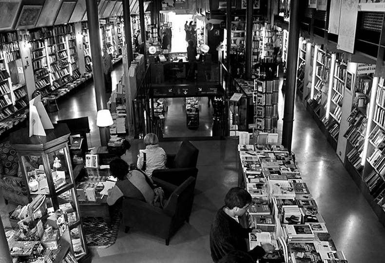 Разобрав все эти визитные карточки, брошюры, рекламные проспекты, открытки, каталоги, снимки, записи и ксерокопии, я обнаружил множество книжных магазинов, не укладывающихся ни в какие хронологические или географические критерии, особенных, таких, которые невозможно понять исходя из прочерченных мною шкал и маршрутов. Я имею в виду магазины, специализирующиеся на путешествиях, магазины-парадоксы: ведь если любой книжный приглашает к путешествию, да и сам есть странствие, то эти отличаются от всех остальных. Как и детские книжные, и магазины комиксов, и букинистические, как и лавки rare books[12]. Их своеобразие описывается причастием «специализирующийся». Специализация ощутима в самом распределении пространства: вместо деления по жанрам, языкам или академическим дисциплинам они структурированы по географическим зонам. Крайнее выражение этого принципа мы находим в сети Altaïr, главный магазин которой в Барселоне представляет собой одно из самых удивительных из известных мне пространств: здесь поэтические сборники, романы или эссе тоже распределяются по странам и континентам, вследствие чего ты обнаруживаешь их рядом с путеводителями или картами. И географические атласы в книжных, специализирующихся на путешествиях, не менее важны, чем поэтические или прозаические сборники. Следуя по маршруту, который предлагает тебе Altaïr, ты минуешь витрину и оказываешься перед доской с объявлениями о самых разнообразных турах. За ней выставлены выпуски одноименного журнала. Далее – романы, книги по истории и тематические путеводители по Барселоне в соответствии с принципом, который соблюдается в книжных магазинах практически любой страны: от близкого, местного к более далекому – ко всей вселенной. Таким образом посетитель попадает в мир, упорядоченный в соответствии именно с этим принципом, и движется от Каталонии, Испании и Европы к прочим континентам, распределенным по двум этажам магазина. Внизу находятся карты и атласы мира, а дальше, в глубине – туристическое бюро. Ведь объявления на доске, журналы, книги неизбежно подталкивают к мысли о путешествии.