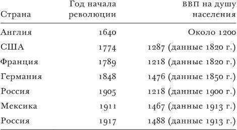 ТАБЛИЦА 1.1. Уровень ВВП на душу населения в периоды революций (в долл. США, 1990 г.)