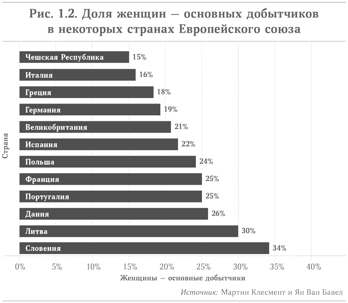 В Великобритании женщина является основным добытчиком в 21 % гетеросексуальных семей. За период между 2006 и 2010 гг. доля таких семей в странах ЕС росла. Однако некоторые страны – Италия, Греция, Австрия и Германия, – где сильны патриархальные традиции, идут против общего тренда.