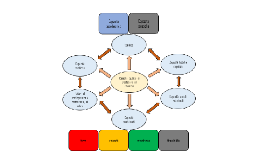 La figura mostra che le prestazioni del calciatore o meglio la sua efficienza in una gara dipendono da molteplici abilità, capacità e qualità, che si influenzano a vicenda.