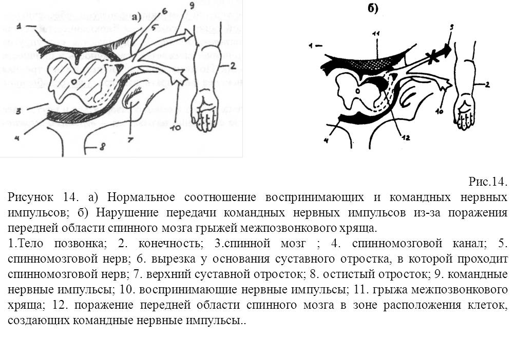 Поэтому в тяжелых случаях заболевания у пациентов атрофируются (уменьшаются в размерах, теряют силу) мышцы рук или ног, но сохраняется способность ощущать боль (см. рис. 14.б.).