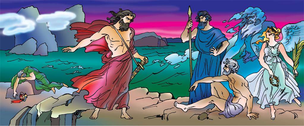 Древние греки верили, что давным-давно, много тысячелетий тому назад, миром правили богиня земли Гея и ее супруг – бог неба Уран. Гея занималась домашним хозяйством – воздвигала горы, прокладывала русла рек, наливала воду в моря, насыпала песок в пустынях, выращивала деревья и травы. Уран приглядывал сверху за своим обширным хозяйством и помогал во всем своей жене. Он был счастливым отцом – шестерых сыновей и шестерых дочерей родила ему Гея. Все они были красавцы как на подбор. Самым могучим среди них был Океан. Он поселился за далекими морями, у самого края земли, где вздымал огромные волны и шумел на просторе. Горе кораблю, заплывшему в объятия Океана, – стать игрушкой в руках этого титана означало верную гибель! Младшим сыном Геи и Урана был титан Крон, отличавшийся особой храбростью и мужеством.