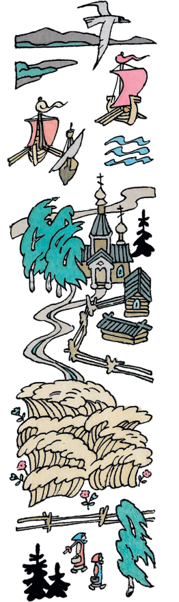 – Хорошо у вас на море-океане, на острове Буяне, а на Руси-матушке во сто крат лучше! У нас луга зелёные, реки синие! У нас поля бескрайние, у заводей берёзки белые, в лугах цветы лазоревые. У нас заря с зарёй сходится, месяц на небе звёзды пасёт. У нас росы медвяные, ручьи серебряные. Выйдет утром пастух на зелёный луг, заиграет в берестяной рожок – и не хочешь, а за ним пойдёшь…