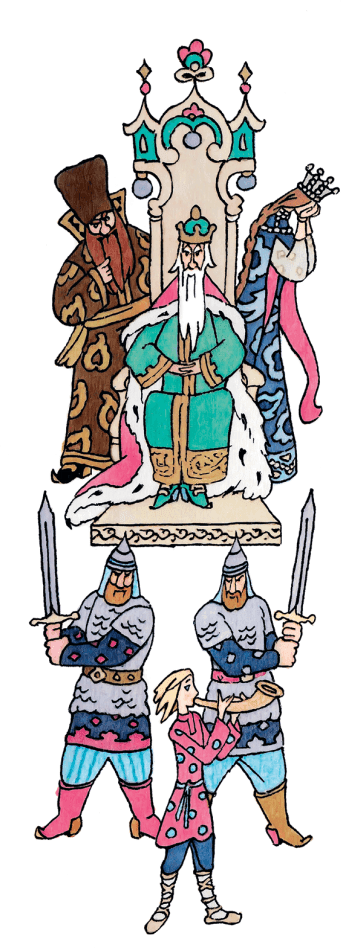 А злой воевода вперёд к царю побежал, ему в ноги пал: