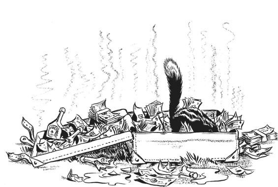 – А мне наплевать, – сказал менее образованный грабитель, – мефитис это или вонючка… Пусть он не валяется на наших деньгах! Не то я приготовлю из него жаркое!