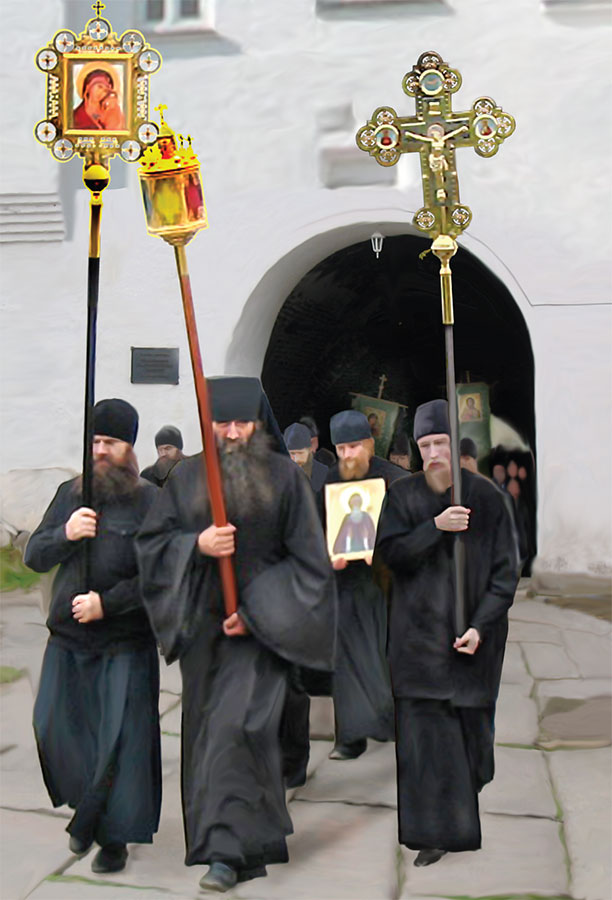 Попробуем представить себе сутки монашеской жизни в монастыре. Согласно уставу монастырское утро начинается в полночь. По сигналу колокола все собираются в храме, где начинается служба. После нее, выслушав поучения настоятеля, монахи возвращаются в свои кельи, однако вовсе не для сна: каждый из них должен совершить перед образами (иконами) определенное число поклонов и молитв. Например, для схимника, исполняющего более строгий обет, положено 600 молитв и 400 поклонов в сутки, простому же монаху иногда достаточно 50 поклонов и 100 молитв. В пять часов утра колокол снова созывает на службу в храме. Затем монахи отправляются в трапезную, где им дают хлеб и чай (иногда квас), после чего – снова различные послушания в кельях вплоть до полуденного обеда. После обеда – еще два-три часа послушаний и снова сбор на службу в храме, которая называется вечерней и занимает час-полтора. После вечерни – ужин в трапезной, а после ужина – снова поклоны и молитвы в монастырской церкви. Примерно в семь вечера монахи расходятся по кельям – они наконец могут поспать. В полночь же начинается новый монастырский день.