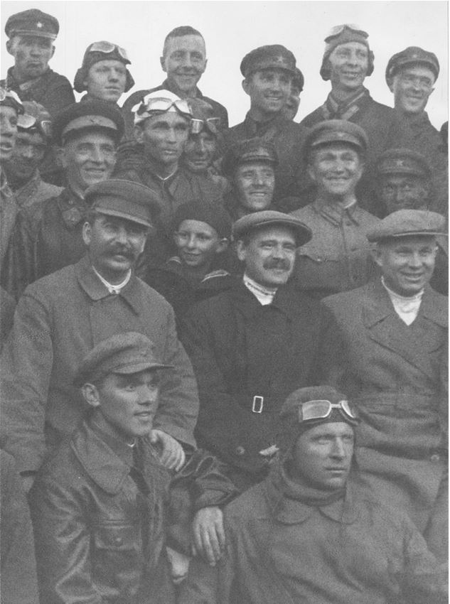 Тушинский аэродром, 12 июля 1935 г. В первом ряду А.С. Яковлев и летчик-испытатель ОКБ Ю.И. Пионтковский. В третьем ряду второй справа – технический директор ОКБ А.С. Беляйкин.