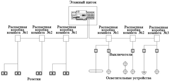 Также надо узнать хочет ли клиент видеть распредкоробки или нет. Если не хочет —это удорожание работы и материалов. Если согласен на распредки (что чаше) -то схема упрощается.