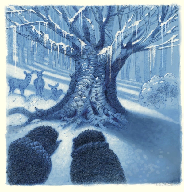 Час или два спустя они совсем утратили ощущение времени. Они остановились, уставшие, потерявшие всякую надежду, решительно не зная, что дальше делать, и сели на поваленный ствол перевести дух и хоть прикинуть, как же им быть. У них всё ныло и болело от усталости и ушибов. Они несколько раз проваливались в ямы и вымокли насквозь. Снегу нападало столько, что они едва брели через сугробы, с трудом переставляя свои маленькие лапки, а деревья росли всё чаще и чаще и были уж совсем неотличимы одно от другого. Казалось, этому лесу нет конца, и начала у него тоже нет, нет и никакой разницы в любом его месте, и что самое худшее – выхода из него тоже никакого нет.