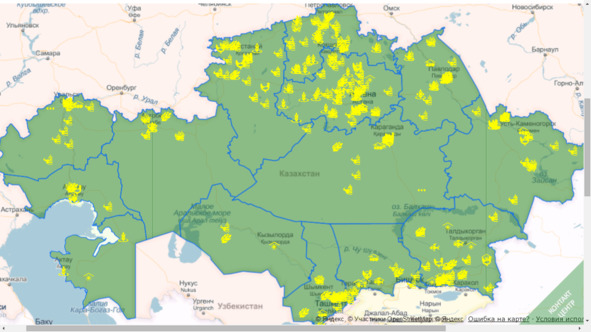 Карта проектов холдинга «Казагро» наглядно отражает эту ситуацию: значки желтого цвета, отражающие реализованные и реализуемые проекты в аграрном секторе, сосредоточены в основном на севере и юге Казахстана: