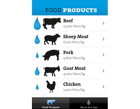По данным голландских ученых A.K. Chapagain, A.Y. Hoekstra из университета Твенте (Water footprints of nations, 2004, стр. 42) для промышленного производства одного килограмма говядины необходимо 15 с половиной тысяч литров воды. Расчет основан на том, что корову в среднем перед забоем выращивают 3 года (с учетом выбраковки скота), из туши получается порядка 200 кг мяса без костей. За жизнь она съедает 1300 кг зерновых и 7200 кг грубых кормов, выпивает 24 кубометра воды, ещё 7 кубометров уходит на другие цели. Аналогичные расчеты, для промышленным образом полученной баранины, приводят нас к 6 100 литрам воды на 1 кг баранины. В расчете при этом также учитывается расход воды на выращивание кормов (1300 литров воды на 1 кг зерна). Как видно, производство баранины требует в 2,5 раза меньше воды, чем производство говядины. При экстенсивном степном производстве баранины разница еще больше. Эти расчеты подтверждаются данными А. А. Иванова: «в расчете на 1 кг сухого вещества корма свиньи потребляют 7—8 л воды, крупный рогатый скот – 4—6 л, лошади и овцы – 2—3 л» (Иванов А. А., 2007).
