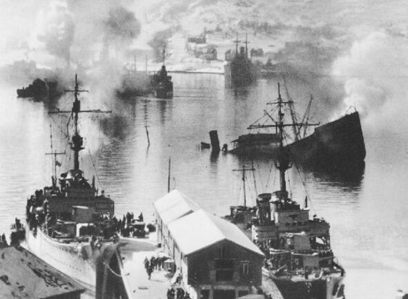Harbor of the Norwegian city of Narvik, after the battle of the British with the German fleet