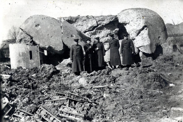 The idea of the ambitious German officer Erich von Manstein to attack the superior in number (4 million versus 3 million Wehrmacht) Anglo-French army through the mountainous Ardennes, from the north, by the few cohesive tank units, is found in the Fuhrer.Photography German soldiers inspect the British tank "Matilda", shot down during the Ardennes operation