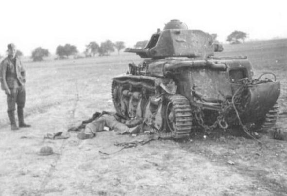 From the battles of this period, we note a large tank battle at Annu. 623 German (Panzer 12) and 415 French (Renault, Hotchkiss) tanks converge here. The shortcomings of German armored vehicles are revealed thin, 14, 5 mm. armor and weak 20 mm. a gun. They are opposed by 45 mm. armor and 37 mm. the guns of Hotchkiss, whose crews, however, consist of only two people. The tactics of the panzerwaffe to beat with a steel fist, with a clear coordination on the radio and a clear goal, shows superiority over the manner of the opponents to place the tanks in a shaky line. The armed forces of Belgium withdraw from the fight on May 28.The photo shows the dead French tanker near the Renault tank, France, 1940.
