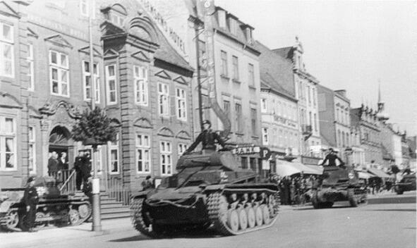 Denmark and Norway are threatened to capture two centers of power at once: England and Germany. Denmark is leaning towards the protectorate of Germany. The leaders of the country (ethnic Germans, as a rule) give the order not to resist the invasion. It will take place in March 1940, and costs the lives of thirteen Danish and two German soldiers. Reich acquires a reliable supplier of agricultural products, a half dozen warships and a six-thousandth volunteer corps. Photography German T-2 tanks on the streets of Copenhagen