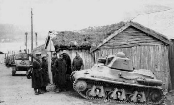 The French Renault tanks, delivered to the Norwegian allies, despite their good performance characteristics, still seem frivolous. Narvik, 1940