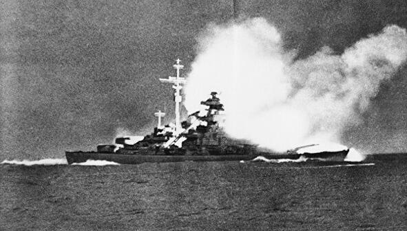 In the evening, the same on May 24, 1941, the Bismarck receives a torpedo into the board from one of the seven Suordfish torpedo bombers that took off from the deck of the approached aircraft carrier. The British extremely painfully perceive the death of the «Hood» and intend to by all means get rid of the battleship. The torpedo gets into the armored belt (145320 mm.) And does not produce any particular effect. Sailor dies. The air attack is repeated on May 25, more successfully. One of two or three torpedoes damages the steering, so that the ship begins to describe the circulation (moves in a spiral). In this state, «Bismarck» has to take the battle with two battleships, a heavy cruiser and several destroyers. German submarines do not have time to come to the rescue. Photography is the last minutes of a superlinked flame.
