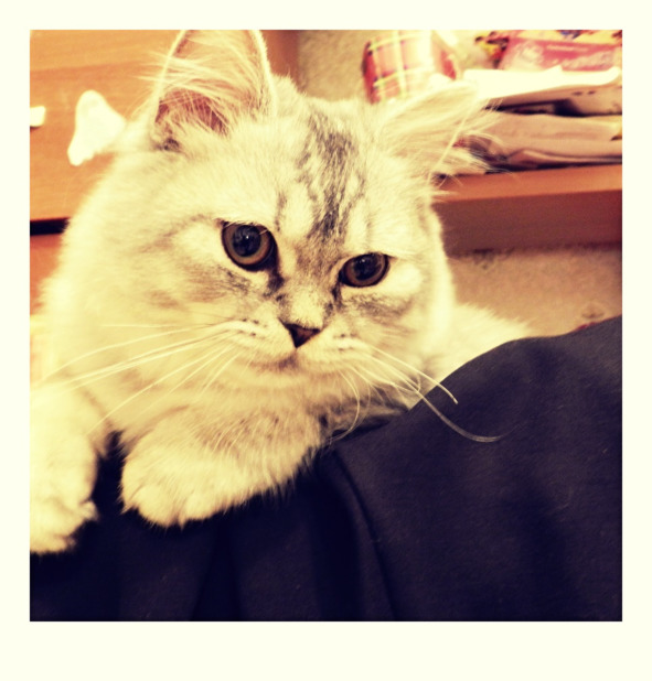 Внезапно кот встаёт на задние лапы, а передними обхватывает мою ногу. Молчит. Держит цепко, когтями.