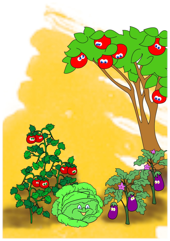Полей на грядках овощи, фрукты собери,