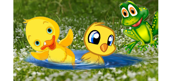 Стали Цыпленок, Утенок, Лягушка и Собачка дружить. По двору вместе скачут, играют. Иногда в догонялки играют, иногда в прятки. В прятки им очень нравится играть. Лучше всех прячется Ляга, ее от травки совсем не отличить. Но она немного печалится, потому что иногда очень уж долго ищут. Тогда она возьмет и квакнет, как будто случайно, а все сразу радуются, что нашли, наконец-то.