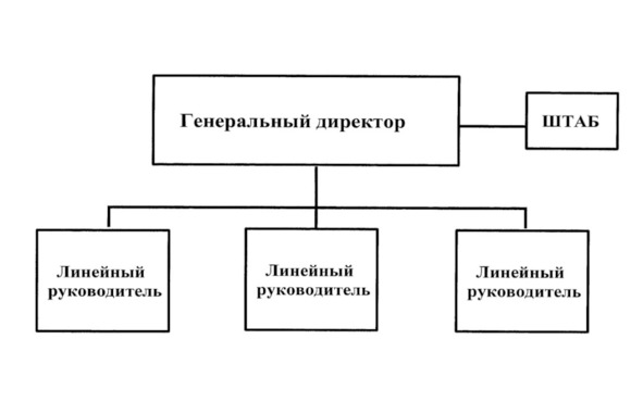Недостатки: высокие требования к квалификации руководителей, высокая загрузка руководителя, необходимость универсальных исполнителей. Линейная структура применяется на небольших предприятиях с несложной технологией и минимальной специализацией.
