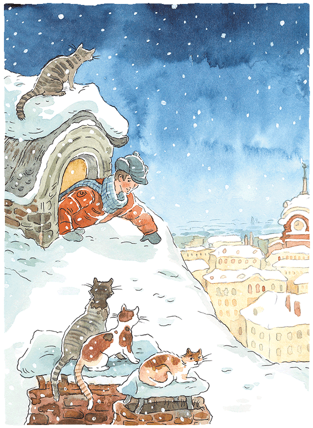 К следующей остановке ноги у Дины согрелись, и она решила выйти поглазеть на ледовый городок у театра. Спустившись к небольшой заснеженной площади, девочка прокатилась на ледяном пятачке. И конечно же, не удержав равновесия, рухнула в соседний сугроб. Папка, которую так бережно Динка держала в автобусе, упала и раскрылась. А ветер, как хулиган, мигом подхватил её содержимое, раскидывая листы в разные стороны.