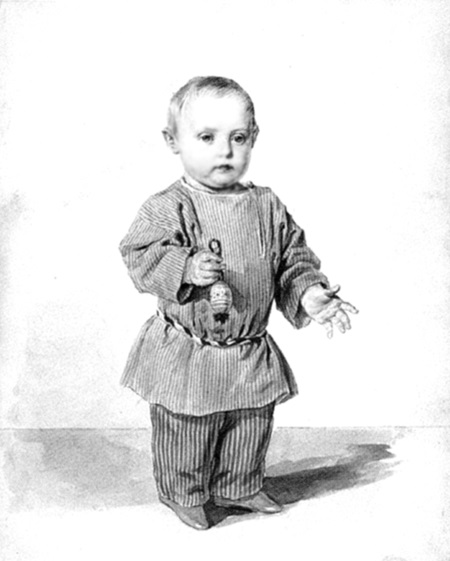 Очень большое место в жизни молодых супругов занимали дети. Детские комнаты находились на первом этаже Аничкова дворца, окнами в сад. Николай Павлович в течение дня постоянно заходил к детям, стараясь не только проводить с ними время, но и играть: «обедали вдвоем, потом играл с детьми… поднялся с Муффи[142], дети, попрощался, ужинал, говорил, Седжер, лег» (13 марта 1822 г.); «обедали вдвоем, играл с детьми, разговаривал с Муффи, работал, лег» (14 марта 1822 г.); «возвратился, играл с детьми» (19 марта 1822 г.); «обедали вдвоем, потом играл с детьми» (20 марта 1822 г.). В дневнике всегда отмечались любые события в детской: «Олинька ходит одна» (19 ноября 1823 г.). Родители иногда гуляли с детьми в дворцовом саду: «Возвратился, Мэри пешком… Саша пешком… чай с детьми» (16 марта 1822 г.). Надо сказать, что Николай Павлович до конца жизни сохранил эту симпатичную черту – постоянное общение с собственными детьми и внуками, выкраивая время для совместных игр и прогулок, и даже мог покормить с ложечки крохотную внучку. Для непростых семейных отношений предшествующих Романовых это было беспрецедентно.
