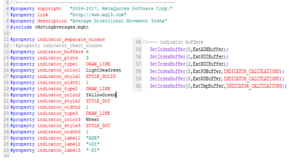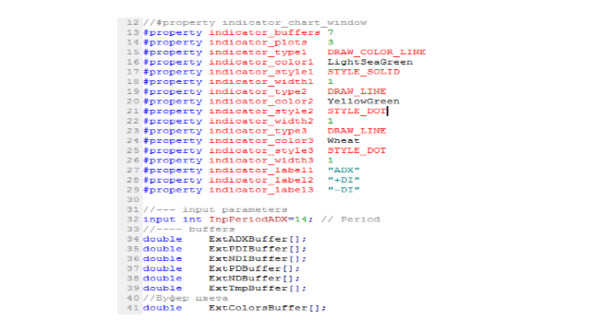 В функции OnCalculate индикатора, значения массивов ExtPDBuffer, ExtNDBuffer, ExtTmpBuffer рассчитываются на основе загруженной ценовой истории, а затем уже на их основе рассчитываются значения массивов ExtADXBuffer, ExtPDIBuffer, ExtNDIBuffer, которые используются для отрисовки диаграмм индикатора.