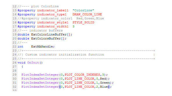И в функции OnInit () свяжем объявленный массив с буфером цвета с помощью функции SetIndexBuffer.