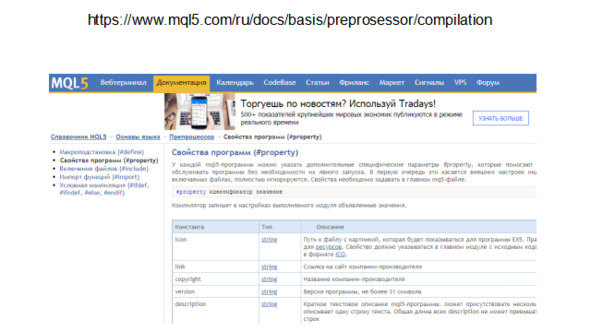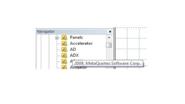 При наведении курсора на название индикатора в окне Navigator терминала всплывает подсказка, отображающая свойство copyright.