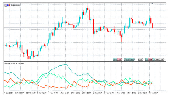 Сигнал на покупку формируется тогда, когда +DI поднимается выше – DI и при этом сам ADX растет.