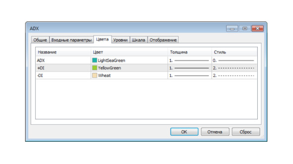 изменена подпись индикатора на ADX (14) – период индикатора.