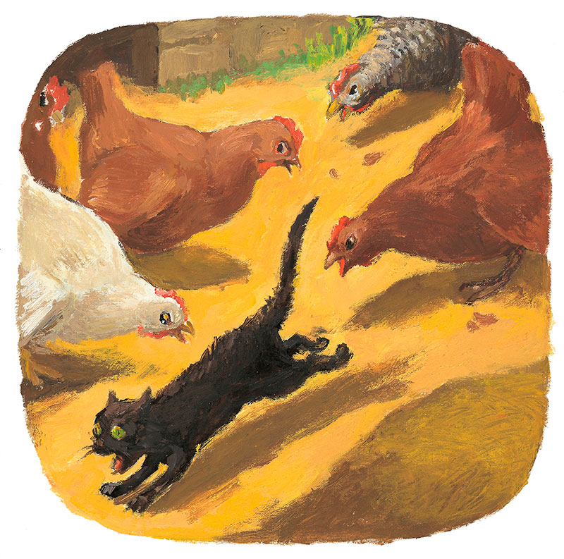 А кошка в то утро как раз всё бродила вокруг курятника – да-да-да!