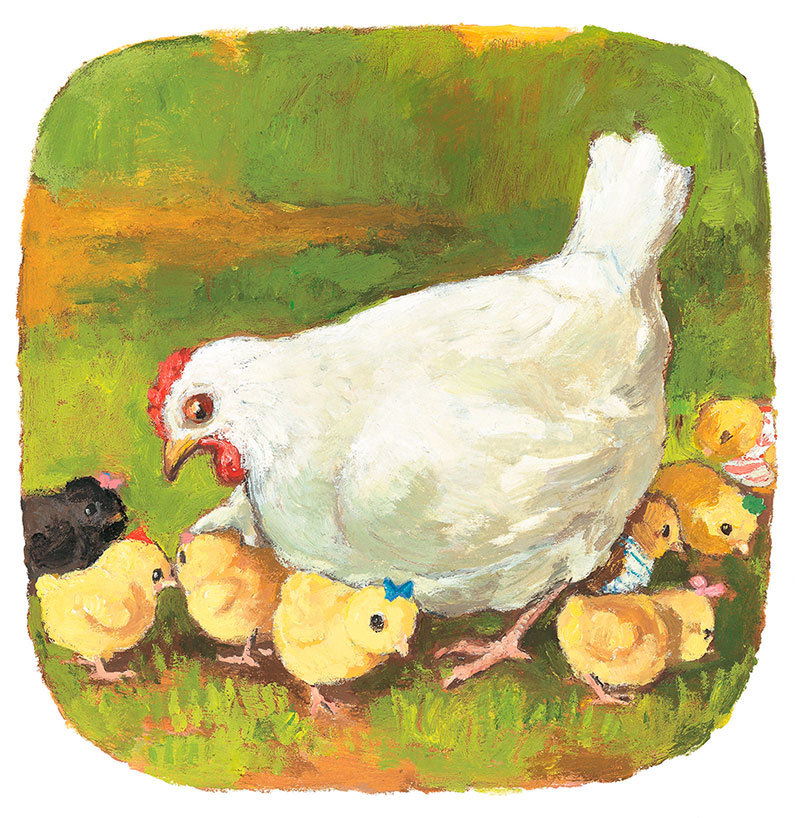 Белянка, образцовая курица-мама, всегда тряслась над своими цыплятами.
