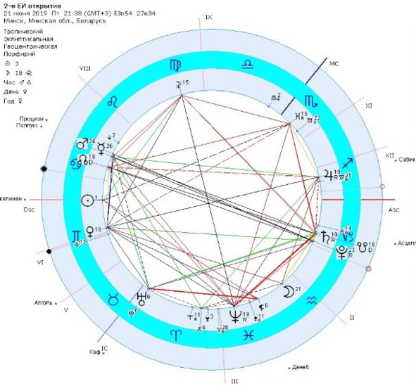 Любые спортивные соревнования – это вотчина Марса. В июне 2019-го еще не пройдет малая полуфаза великого противостояния Марса лета 2018-го, поэтому 2-е ЕИ могут нивелировать негативные марсианские веяния.