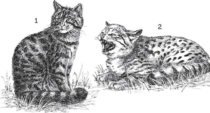 Представители рода кошек: 1 – лесной кот; 2 – степной кот