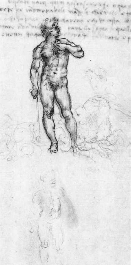 Леонардо да Винчи. Учебный рисунок «Давида» Микеланджело, бумага, Королевская библиотека в Виндзорском замке, Лондон, Англия. (Royal Library, Windsor).