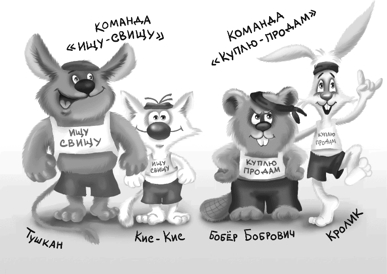 – Следом за ними в фиолетовых трусах выходят спортсмены от лавки бобра Бобровича: Кролик и бобёр. Их команда называется «Куплю-продам», – продолжала ворона.