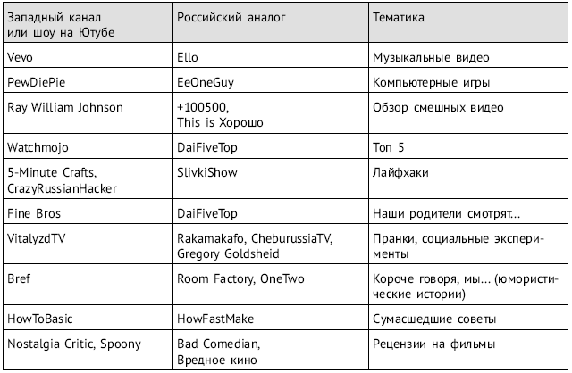 Справедливости ради следует отметить, что западные каналы тоже используют чужие идеи, и в точности определить, кто, что и у кого позаимствовал – невозможно. Более того, авторам нескольких российских каналов удалось обойти западные аналоги по количеству подписчиков.