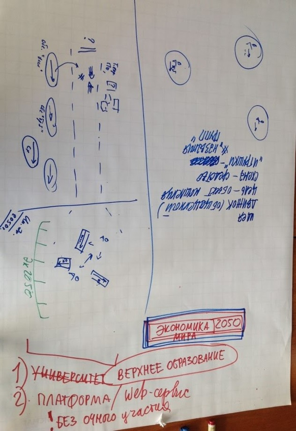 Ты считаешь вот как организовать этот процесс, чтобы суметь, что-то из них вытащить? Ты считаешь, что если мы введем схему в их процесс коммуникаций, то заставим их обсуждать то, что они делают в схематическом языке. То после этого можно будет с чем-то из этого иметь дело. Если говорить об игре, проблематика встает. Игра должна иметь определенную последовательность действия, у нее должна быть механика. Главное, у нее должно быть игровое отношение. То есть они должны, если это пространство расширить, начать играть с этими объектами. Вот эти исследования, которые они просто обсуждают, они должны превратиться в нашей конструкции игры в какие то объекты, с которыми можно что-то делать.