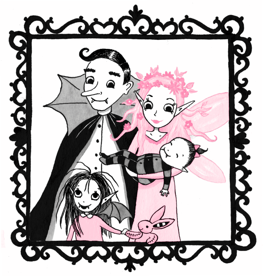 У меня есть младшая сестричка, малышка Вишенка. Она наполовину вампир, наполовину фея, как и я! Она любит спать, агукать и пить розовое молоко.