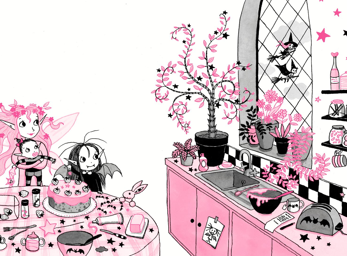 Я подошла к столу и принялась украшать торт, покрытый розовой глазурью, кондитерской посыпкой в виде летучих мышек и розовых звёздочек. Но одним глазком я всё-таки поглядывала в окно. Наконец я что-то заметила среди облаков.